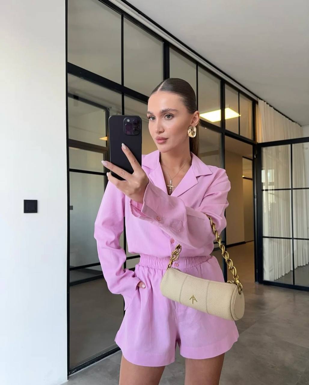 Легкий льняной костюм (шорты + рубашка с длинным рукавом) барби