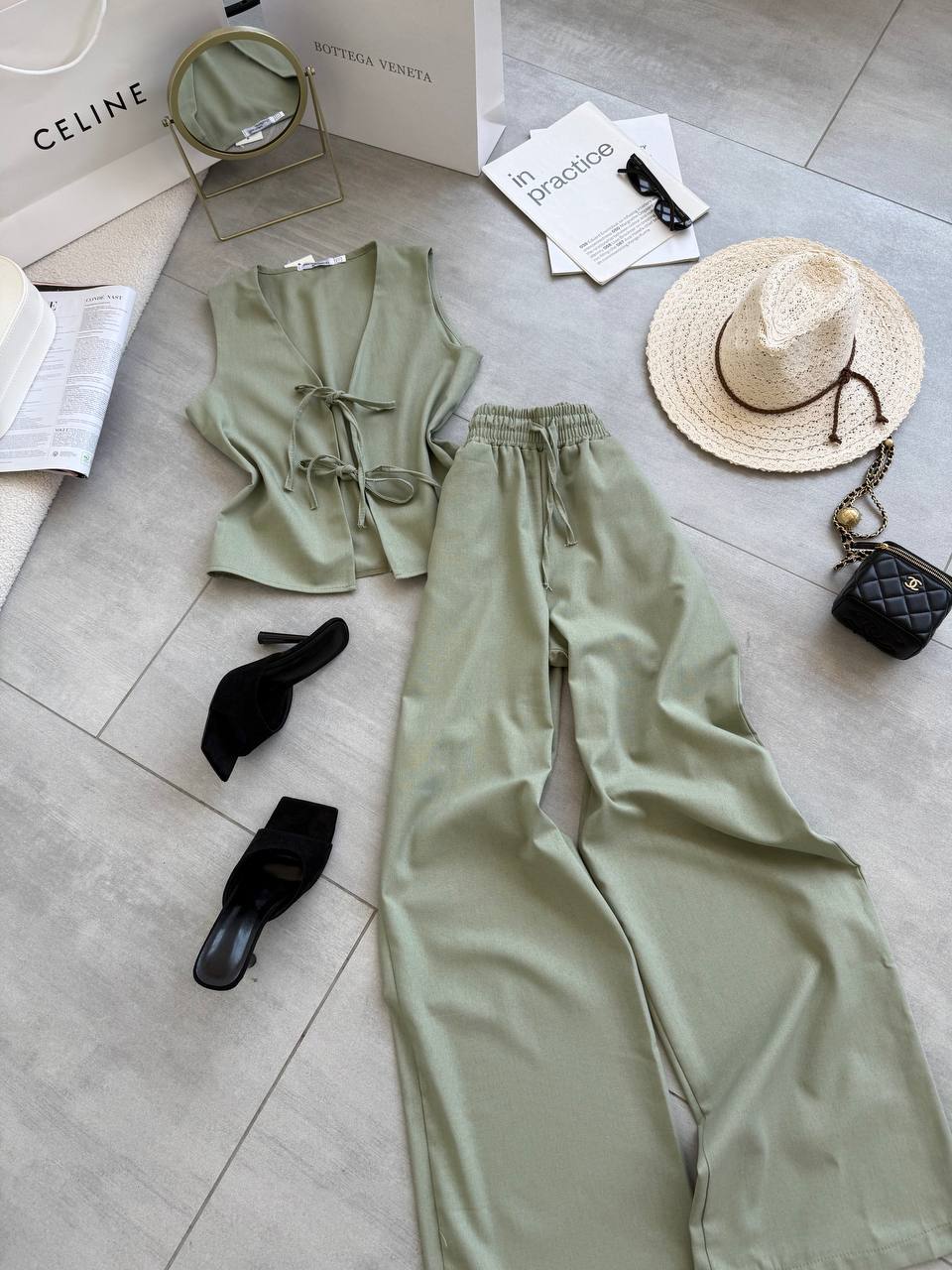 Будьте першим, хто залишив відгук “Легкий льняной костюм (жилетка и брюки) оливка”“