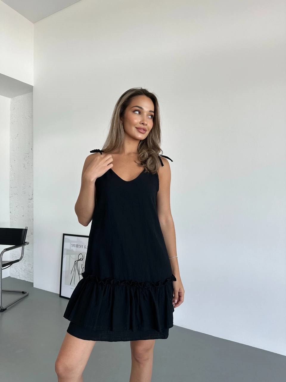 Головна » Магазин » Одяг » Сукня туніка сарафані » Легкий сарафан на бретелях-завязочках+воланчиком по низу лен жатка черный