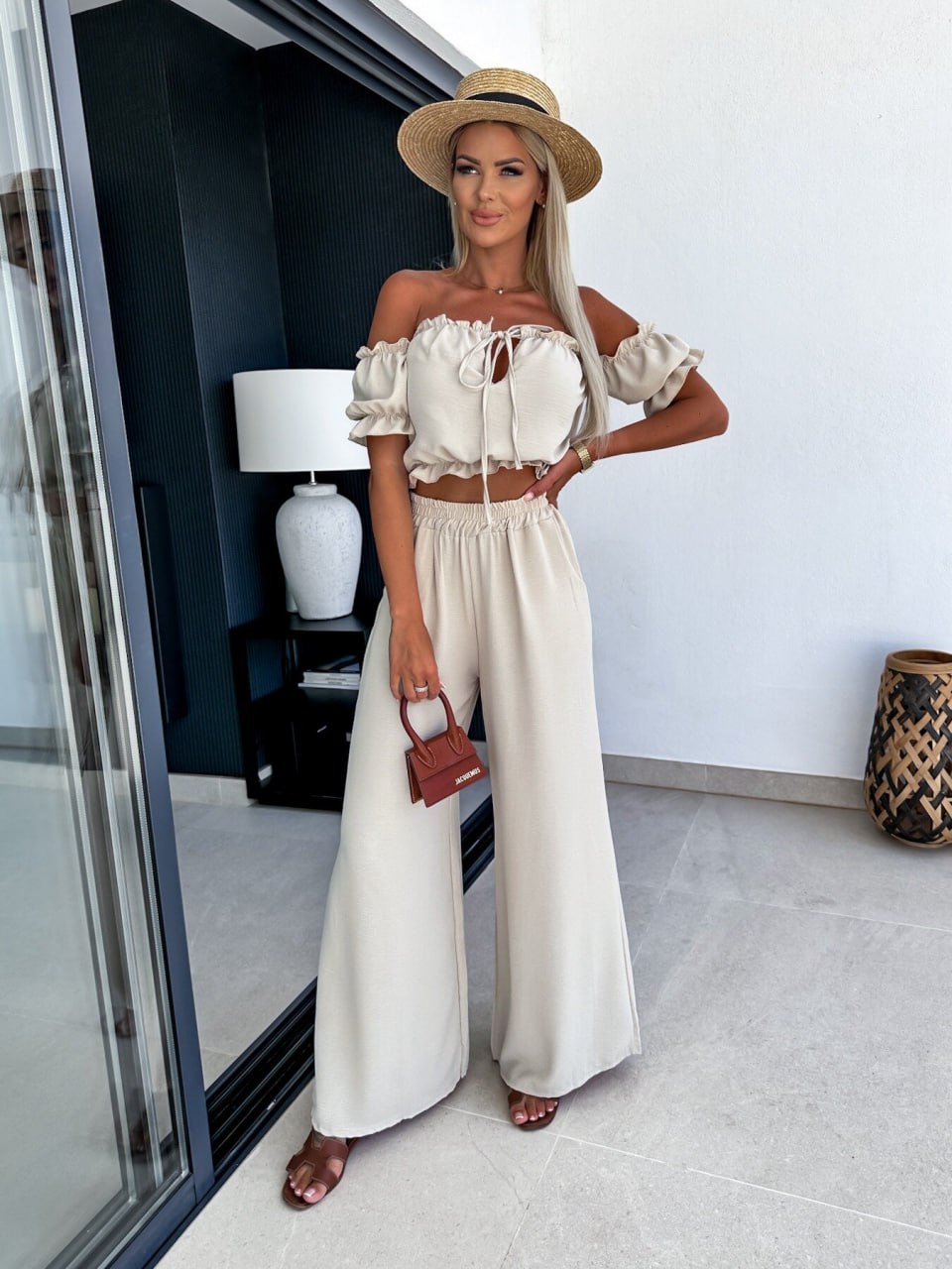 Головна » Магазин » Одяг » Жіночі костюми » Легкий стильный Костюм-двойка (Топ+Брюки) беж