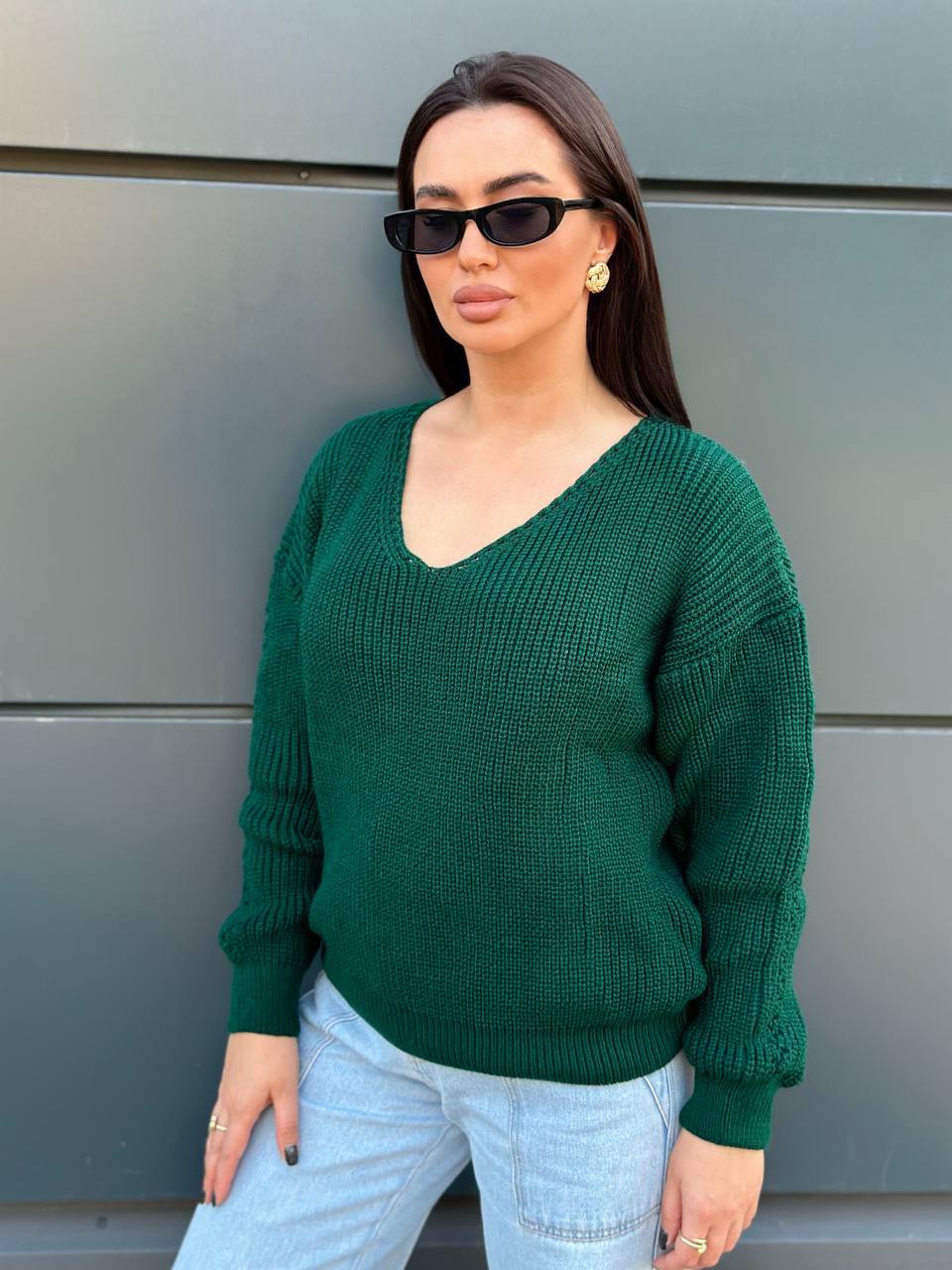 Легкий свитер с глубоким V-образным вырезом бутылка