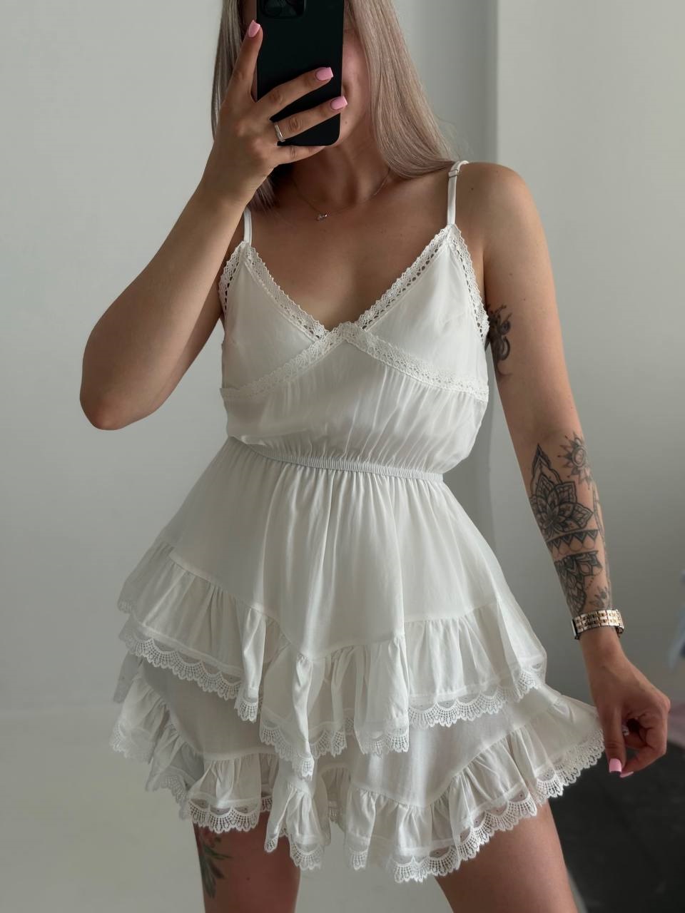 Будьте першим, хто залишив відгук “Легкий женственный сарафан с двойной юбкой с оборочками+талией на резинке штапель белый”“
