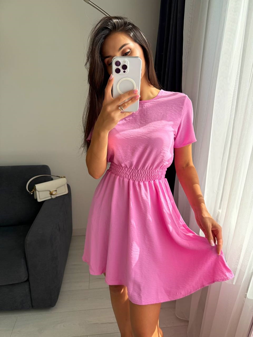 Головна » Магазин » Одяг » Сукня туніка сарафані » Легкое Базовое Платье талия на резинке+расклешенная юбка розовый