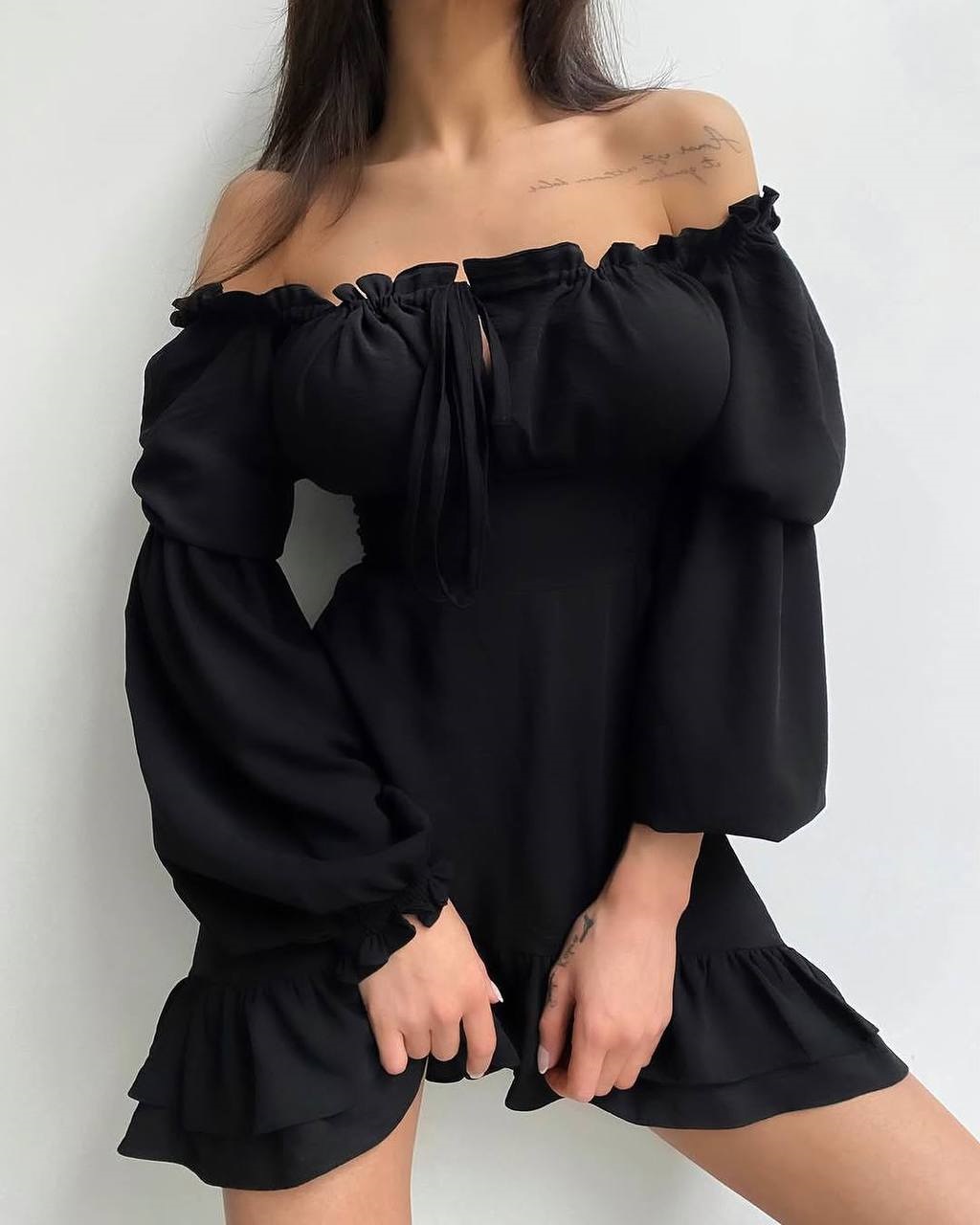 Легкое и воздушное платье с воланами+по горловине резинка черный