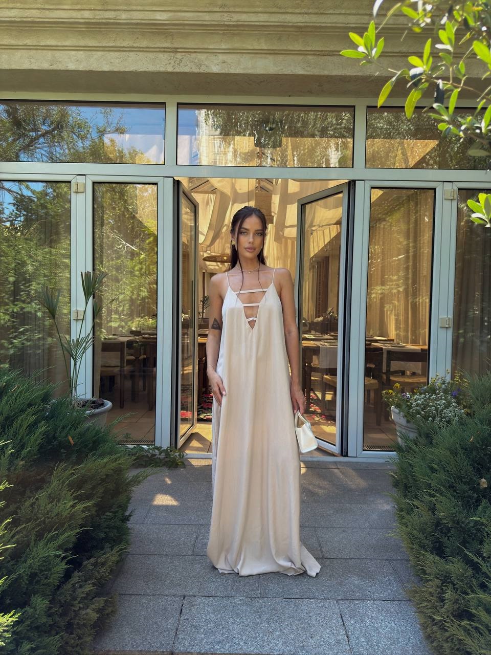 Легкое невесомое макси платье из натуральной ткани бежевый