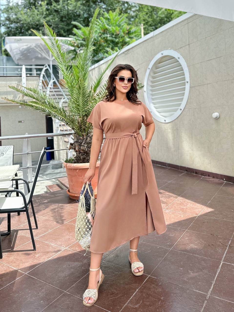 Будьте першим, хто залишив відгук “Легкое платье c расклешенной юбкой под пояс+цельнокройным рукавом шоколад”“