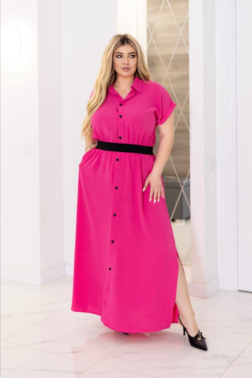 Легкое платье длиной макси со спущенным плечом+по талии эластичный пояс-резинка малина