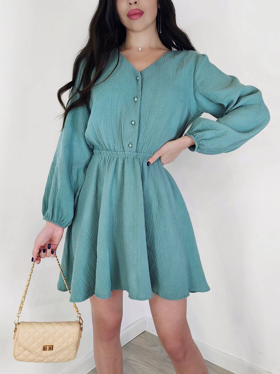 Будьте першим, хто залишив відгук “Легкое Платье из муслина на пуговицах фисташка”“