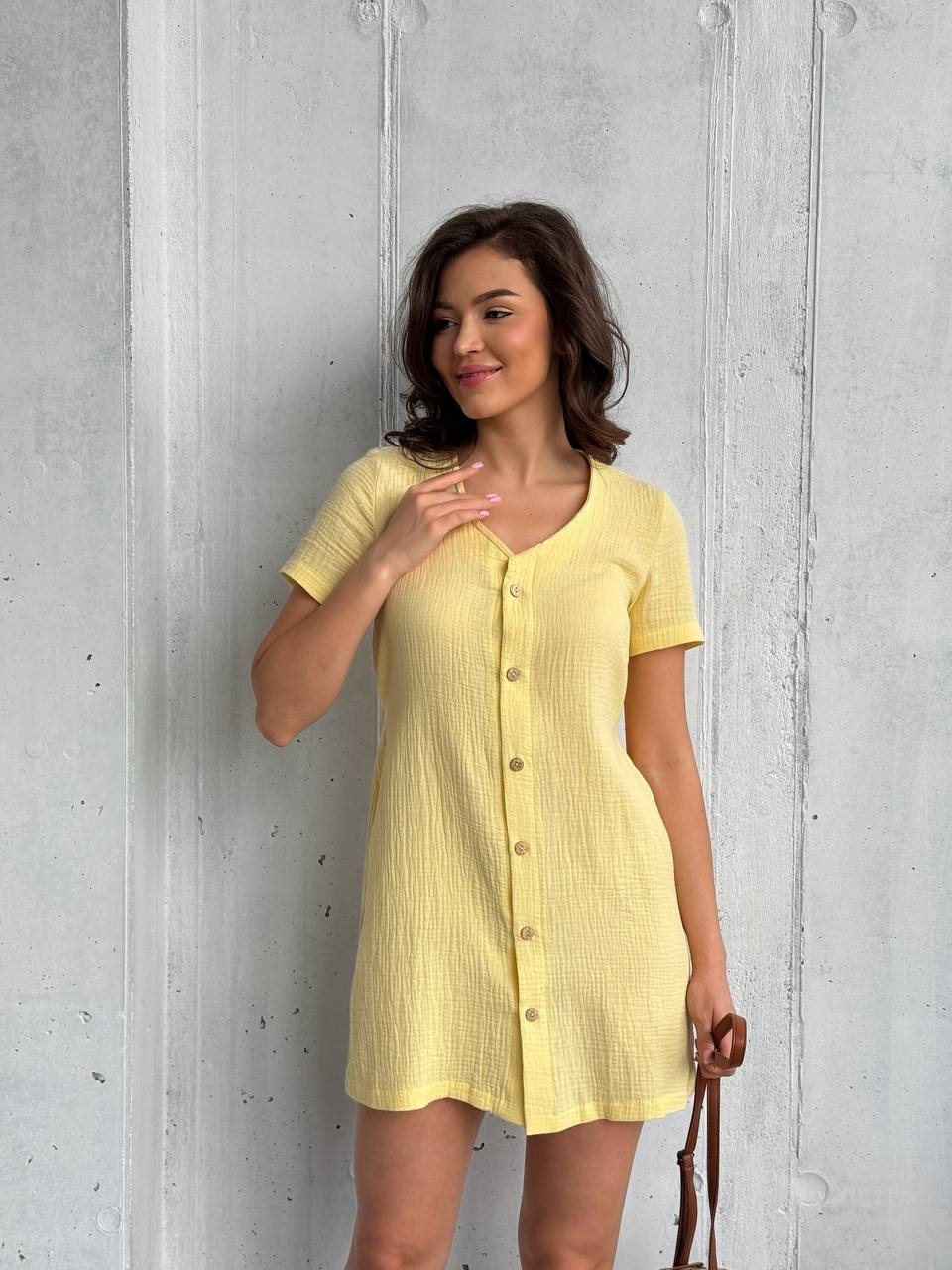Легкое платье из муслина на пуговицах длиной мини желтый