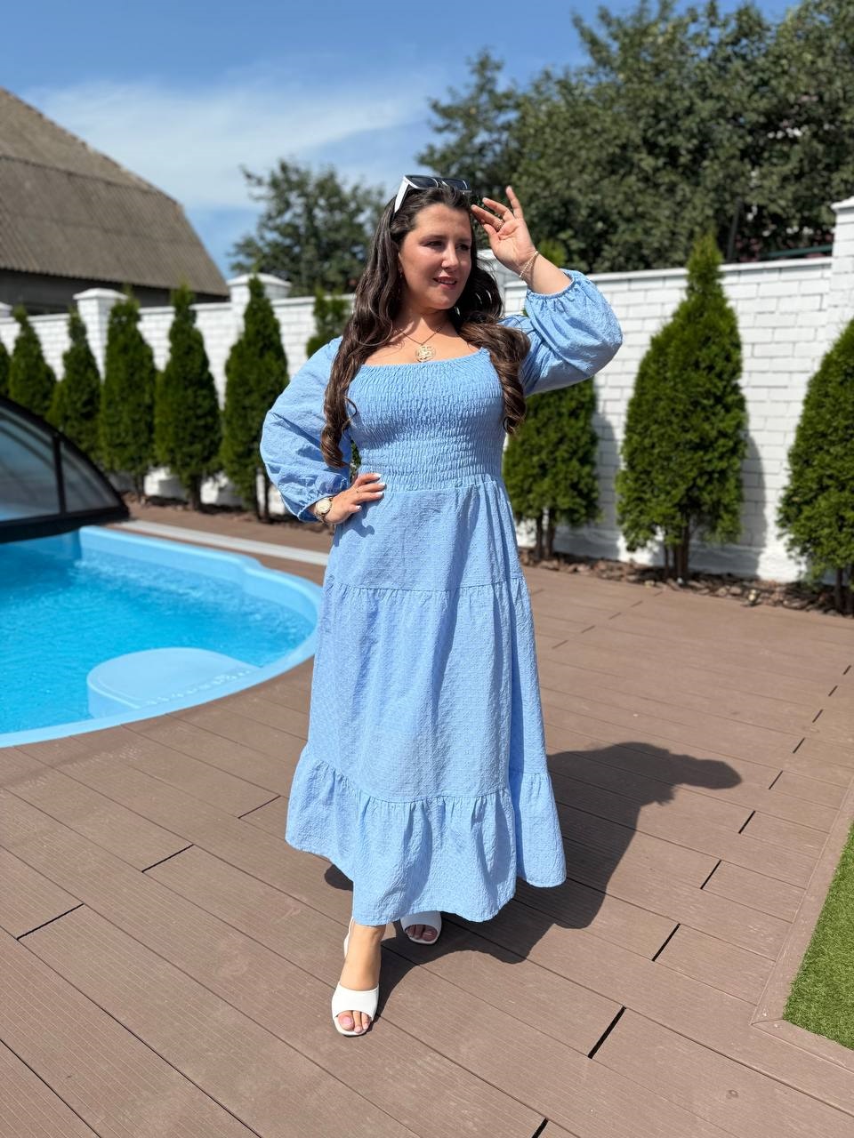 Будьте першим, хто залишив відгук “Легкое Платье из прошвы приталенного силуэта+по груди настрочена резинка голубой”“