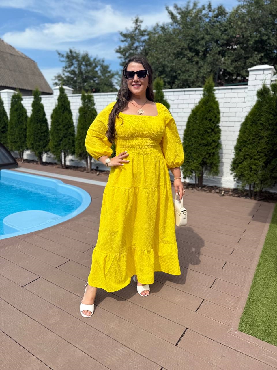 Легкое Платье из прошвы приталенного силуэта+по груди настрочена резинка желтый