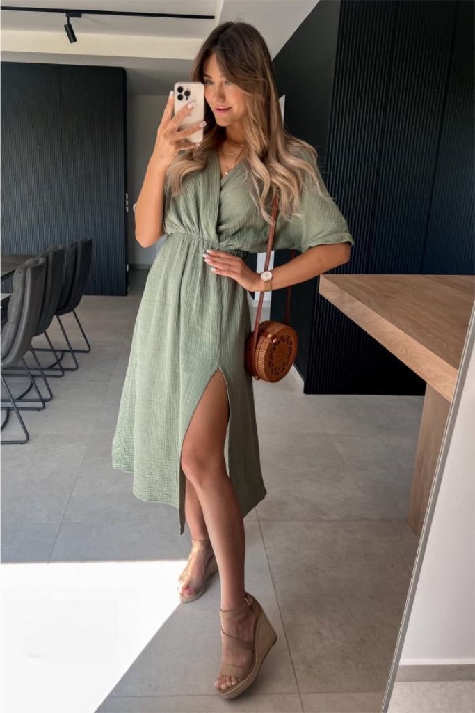 Будьте першим, хто залишив відгук “Легкое платье муслин оливка”“