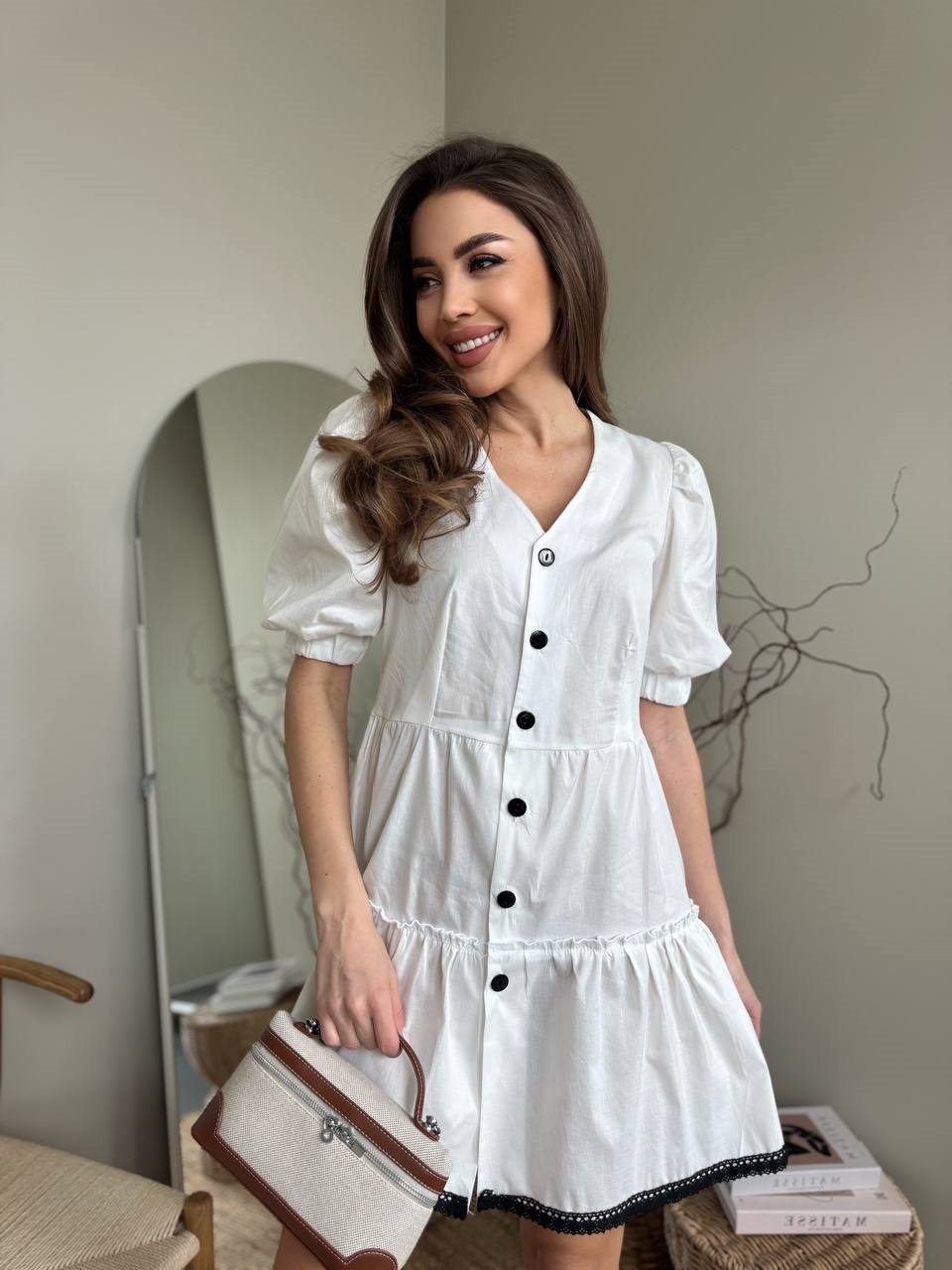 Будьте першим, хто залишив відгук “Легкое платье на пуговицах с ярусной юбкой+рукавом фонариком белый”“