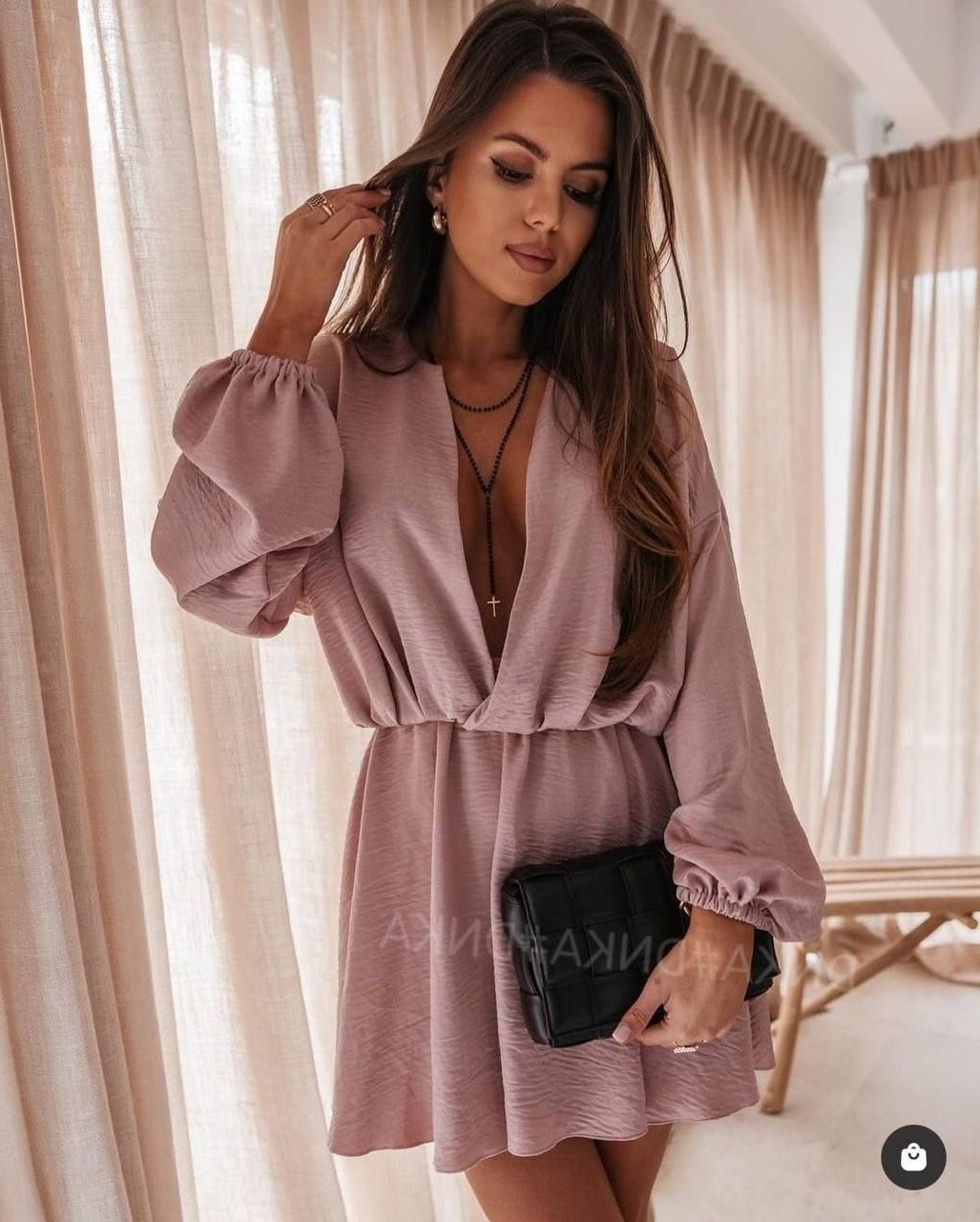 Легкое Платье с расклешенной юбкой+полочкой на запах пудра