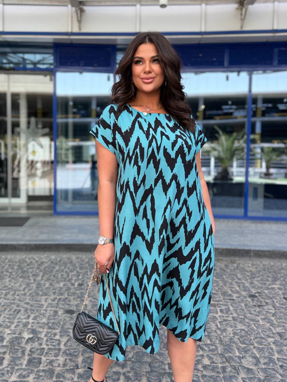 Легкое платье свободного кроя с карманами (короткий рукав) бирюза