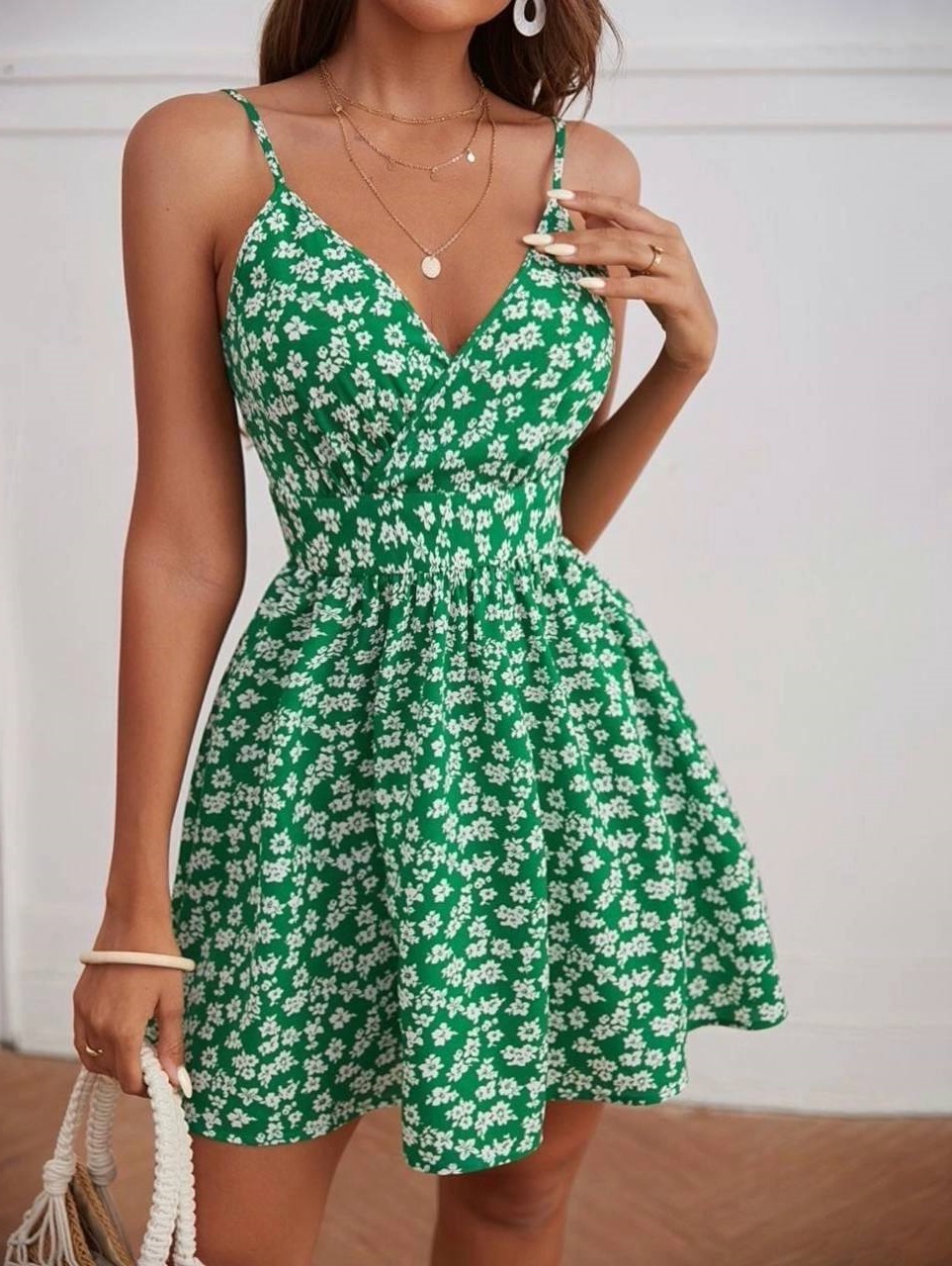 Головна » Магазин » Одяг » Сукня туніка сарафані » Легкое Платье в цветочный принт на бретелях зеленый