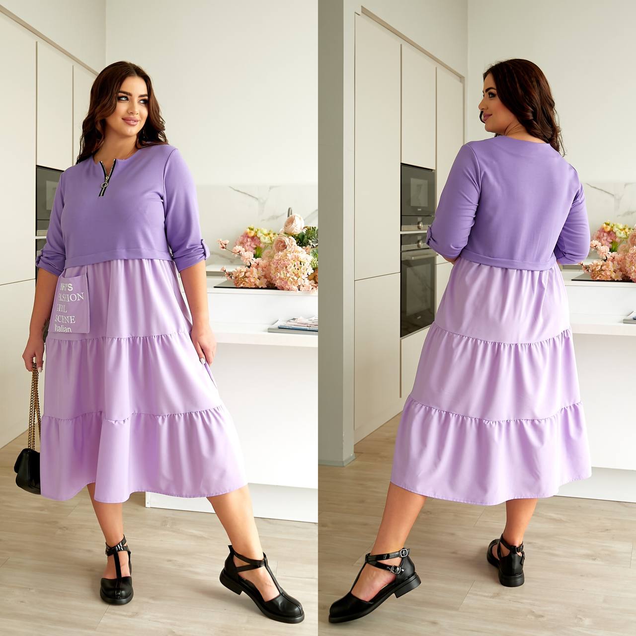 Легкое шелковистое платье с талией на резинке+кружевом по полочке сиреневый