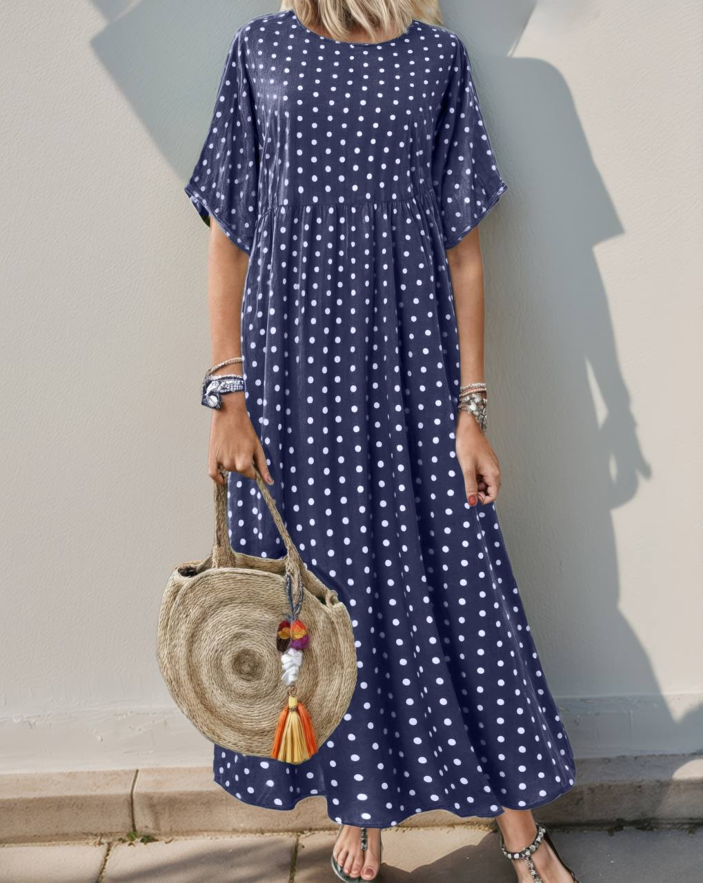 ✨Легкое платье свободного кроя с коротким рукавом в горошек.