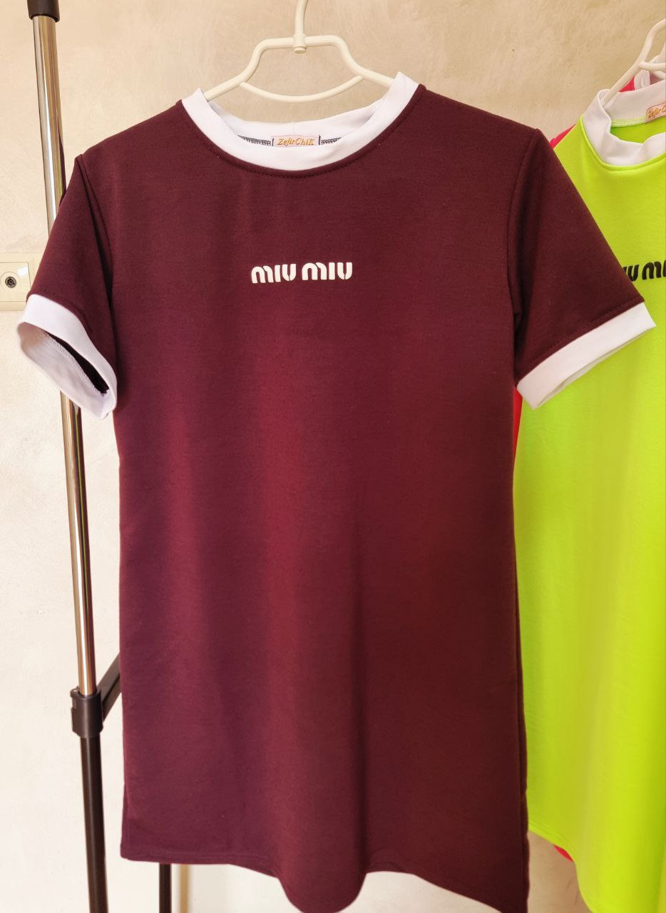 Легкое трикотажное платье свободного кроя.