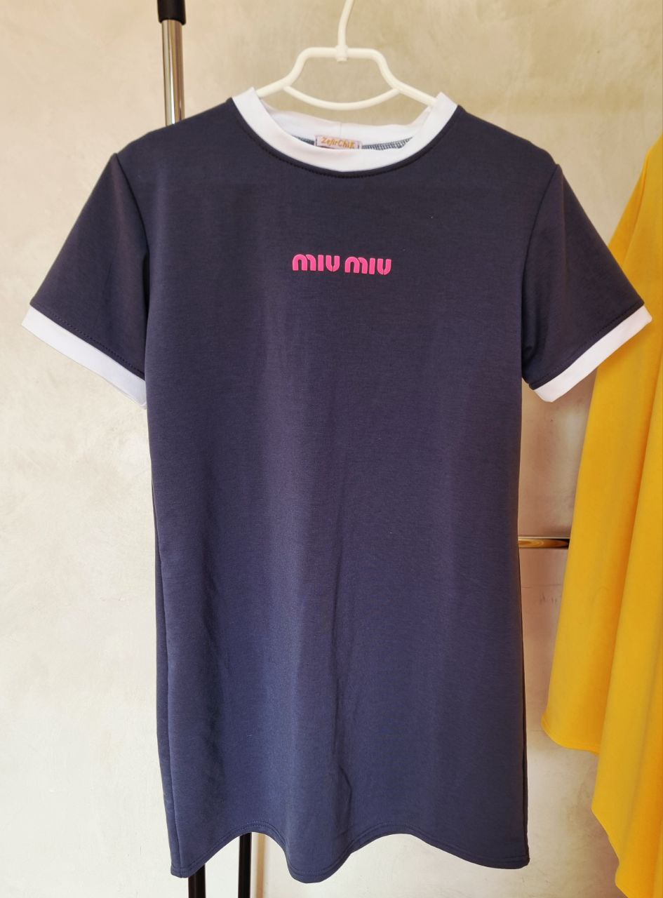 Легкое трикотажное платье свободного кроя.