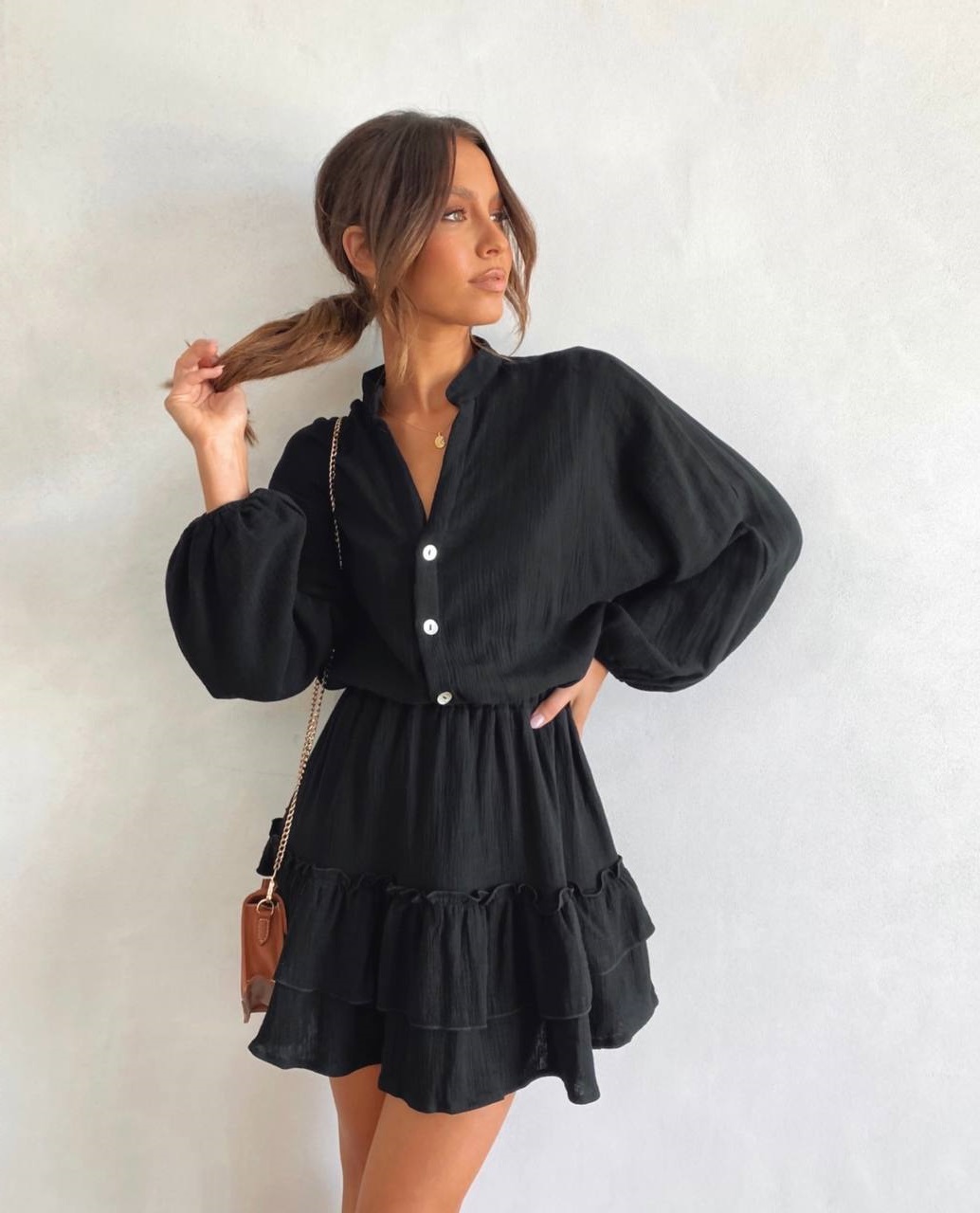 Головна » Магазин » Одяг » Сукня туніка сарафані » Легкое воздушное платье по талии резинка+воланом на юбке черный