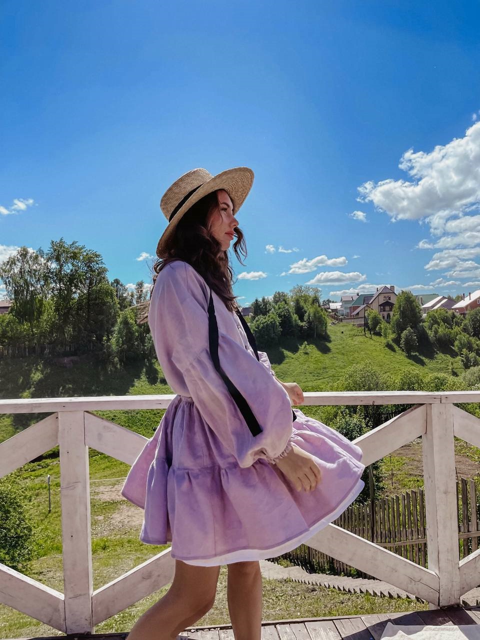 Головна » Магазин » Одяг » Сукня туніка сарафані » Легкое воздушное платье с длинным рукавом лаванда