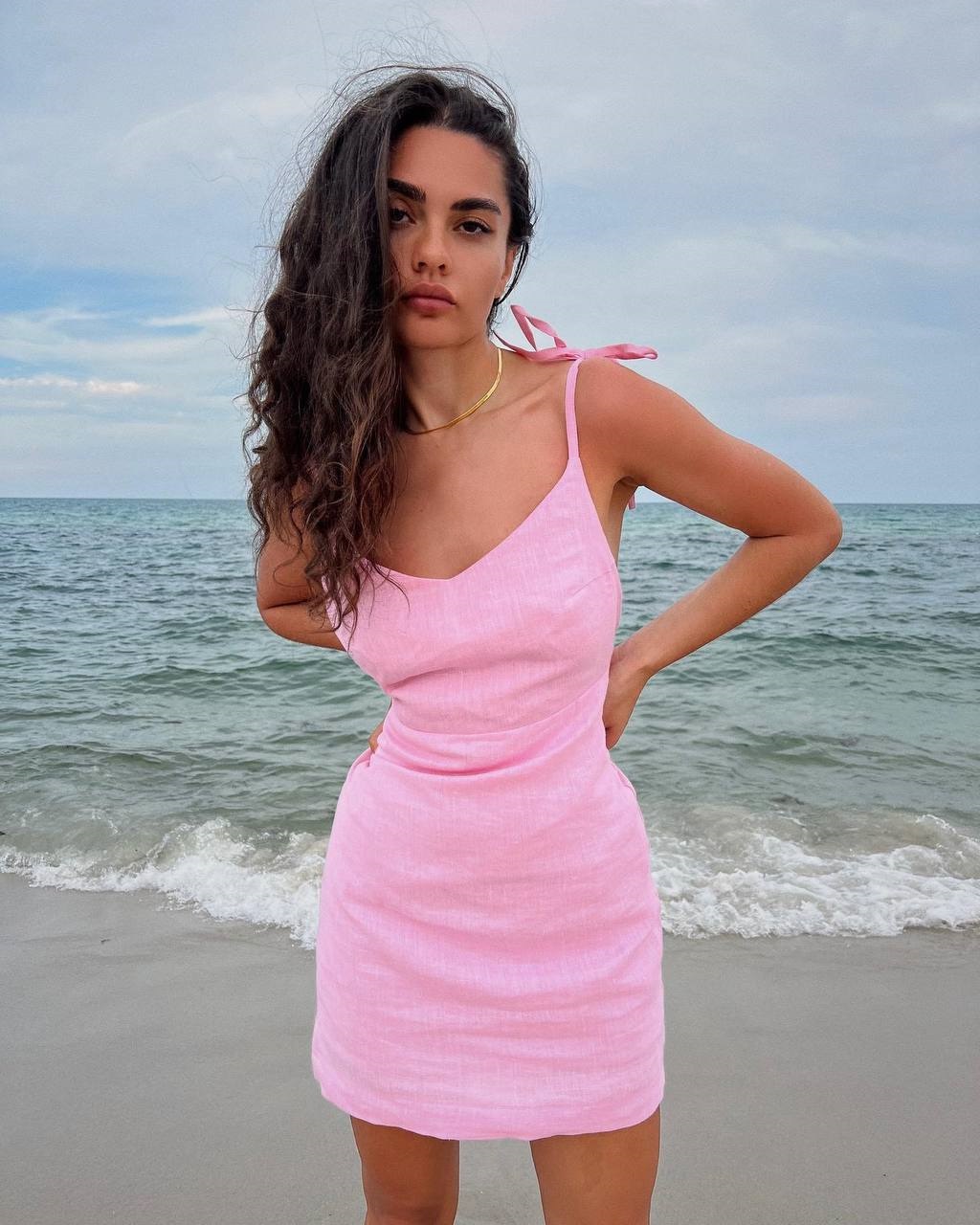 Будьте першим, хто залишив відгук “Летнее льняное платье на бретелях с открытой спинкой розовый”“