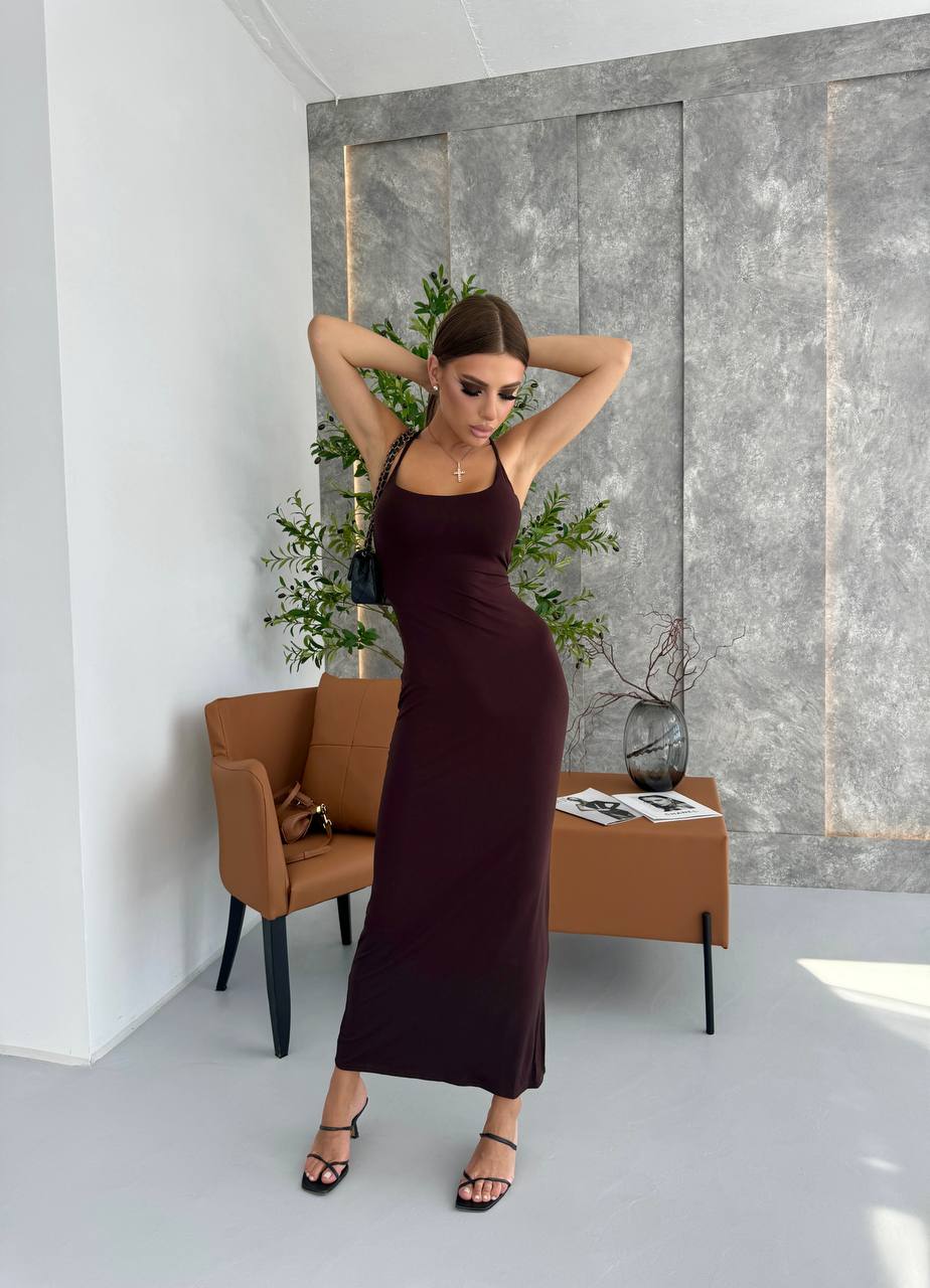 Летнее платье макси с открытой спиной и перекрестными завязками шоколад