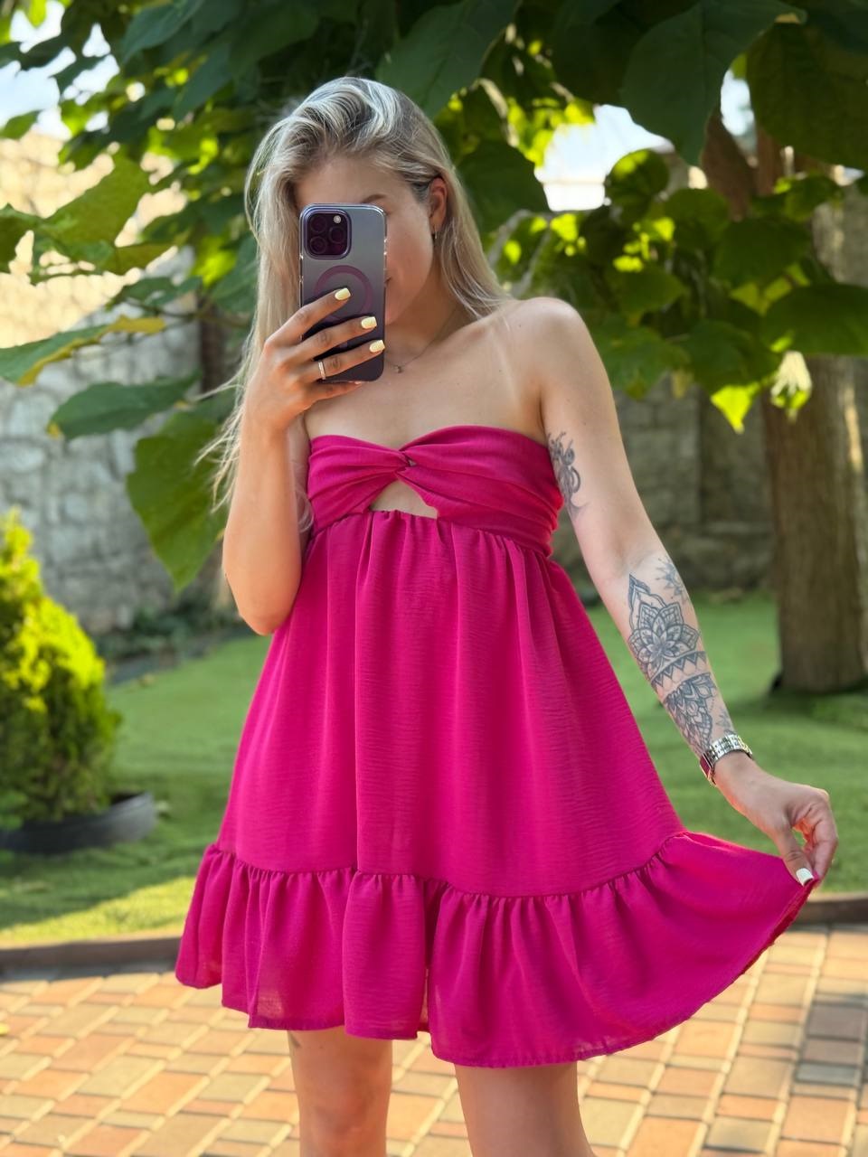Летнее Платье с расклешенной юбкой+акцентным лифом малина