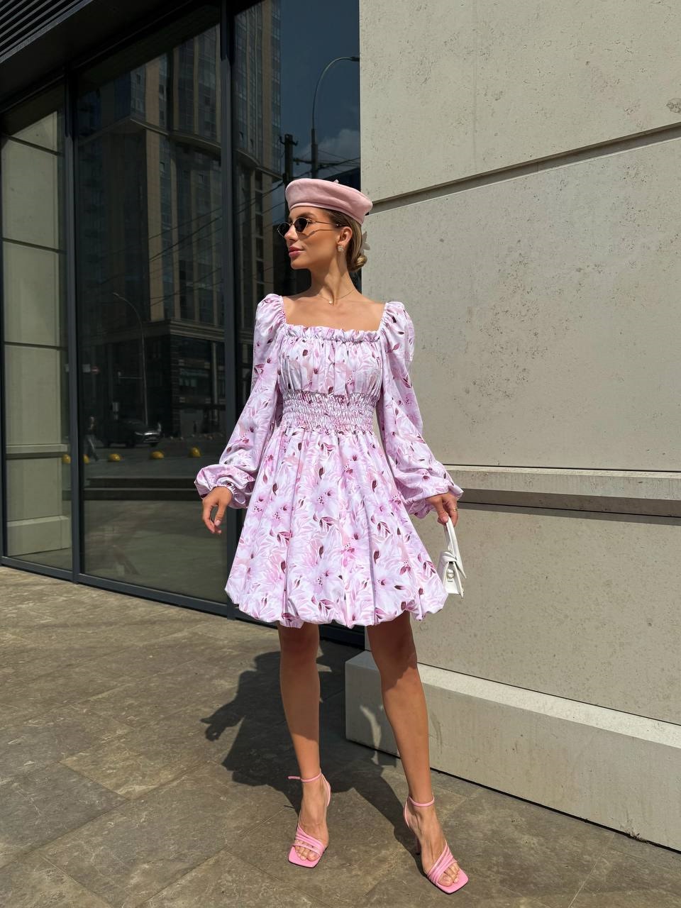 Головна » Магазин » Одяг » Сукня туніка сарафані » Летнее платье с расклешенной юбкой+по талии резинка принт акварель розовый