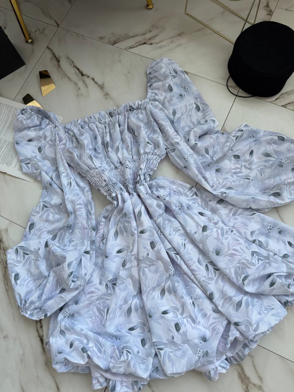 Головна » Магазин » Одяг » Сукня туніка сарафані » Летнее платье с расклешенной юбкой+по талии резинка принт акварель серый