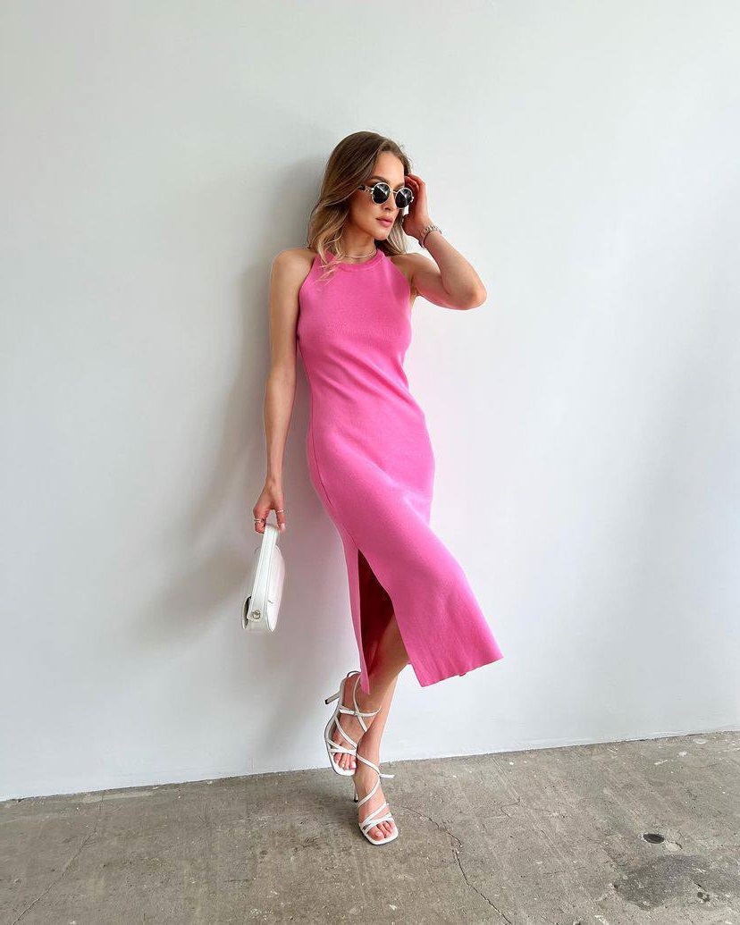 Головна » Магазин » Одяг » Сукня туніка сарафані » Летнее платья прямого кроя трикотаж рубчик с разрезами розовый