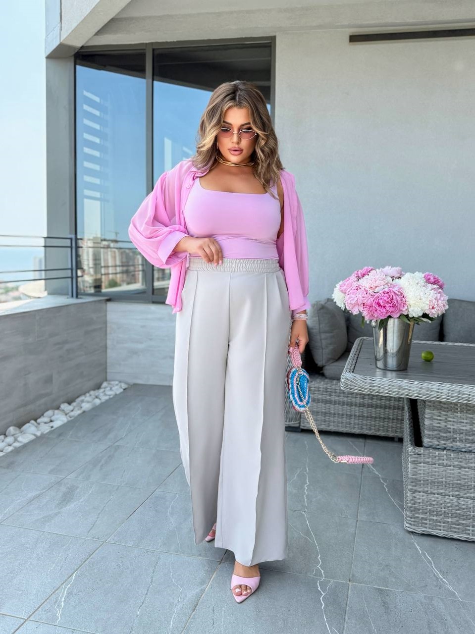 Головна » Магазин » Одяг » Жіночі штани джинси штани гетри » Летние брюки со стрелками свободного кроя+талия на резинке серо-бежевый