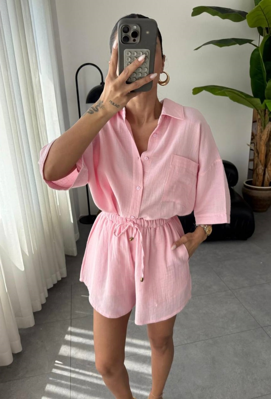 Летний комплект из муслина (рубашка+шорты) свободный крой барби