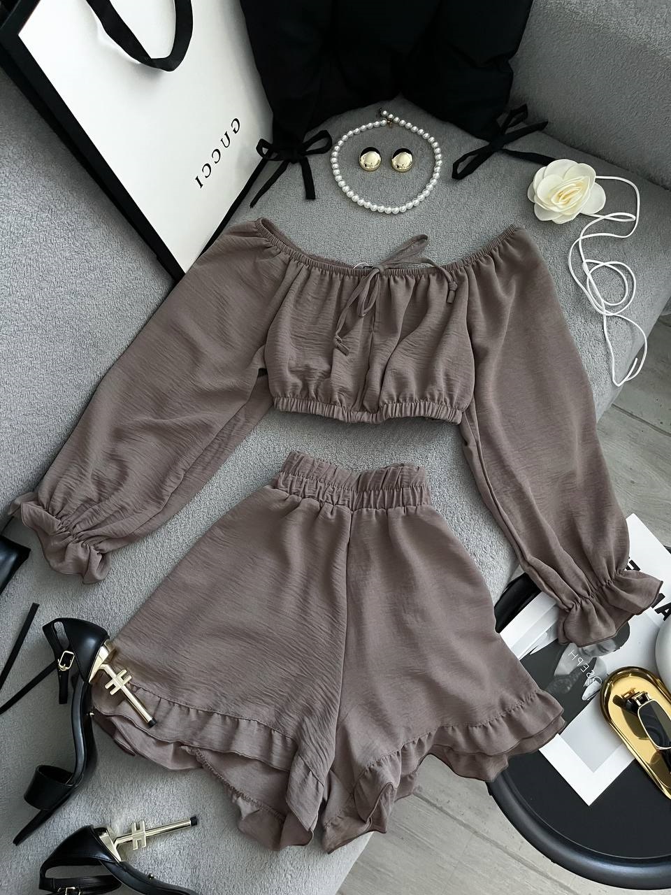Летний костюм (лаконичний топ+свободные шорты) мокко