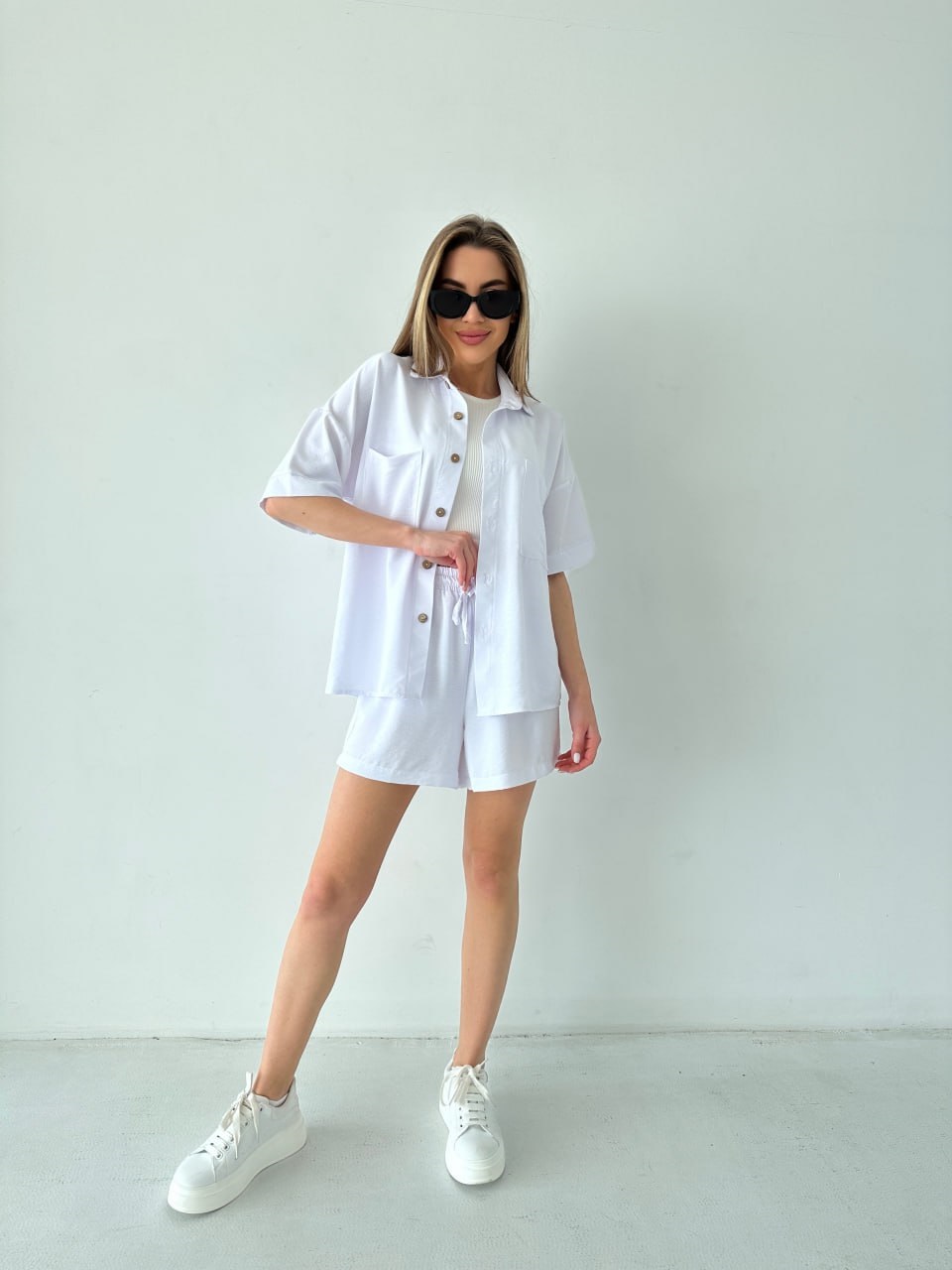 Летний костюм (рубашка свободного кроя+шорты с карманами) белый