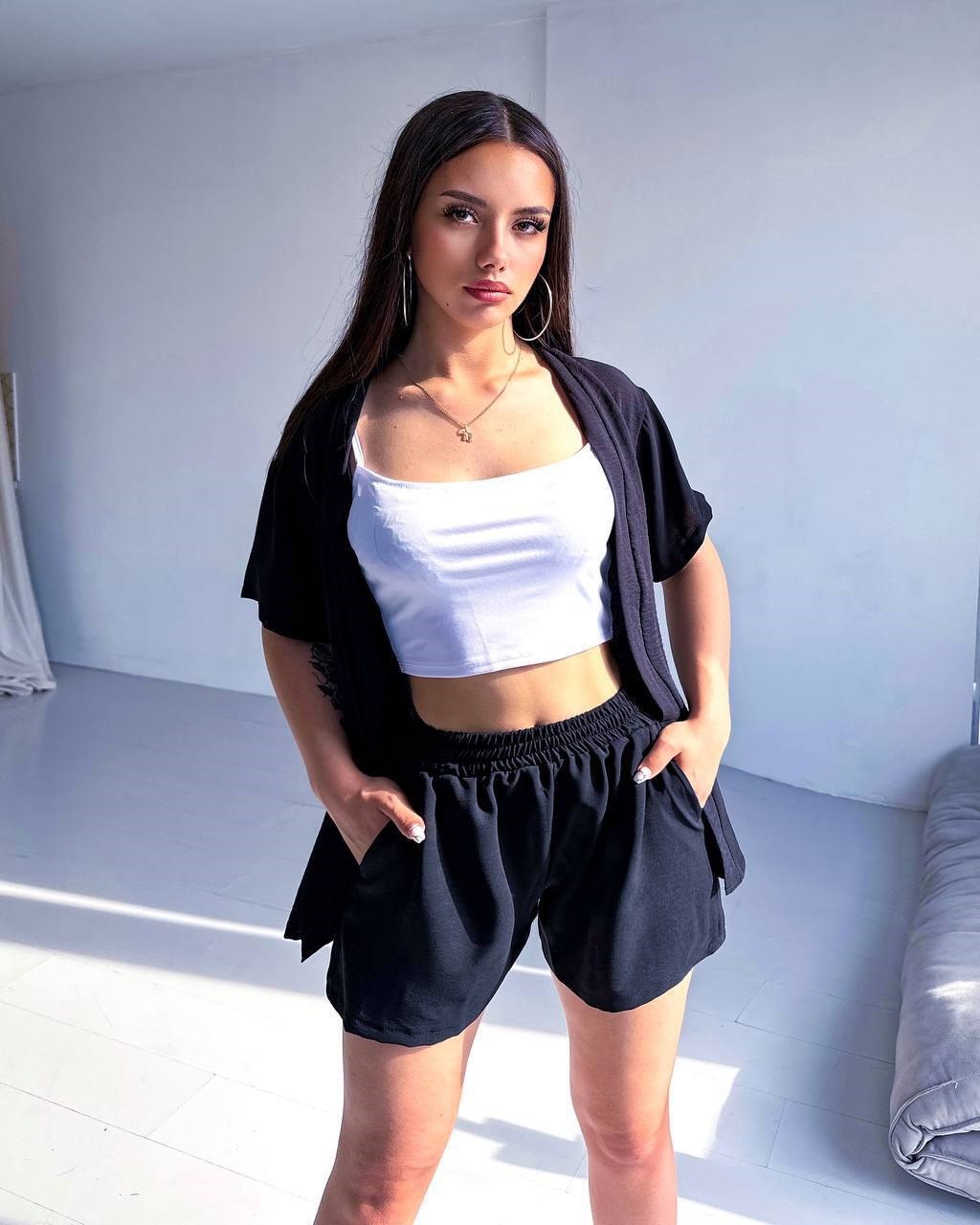 Летний костюм (шорты с карманами+рубашка удлиненная свободного кроя) черный