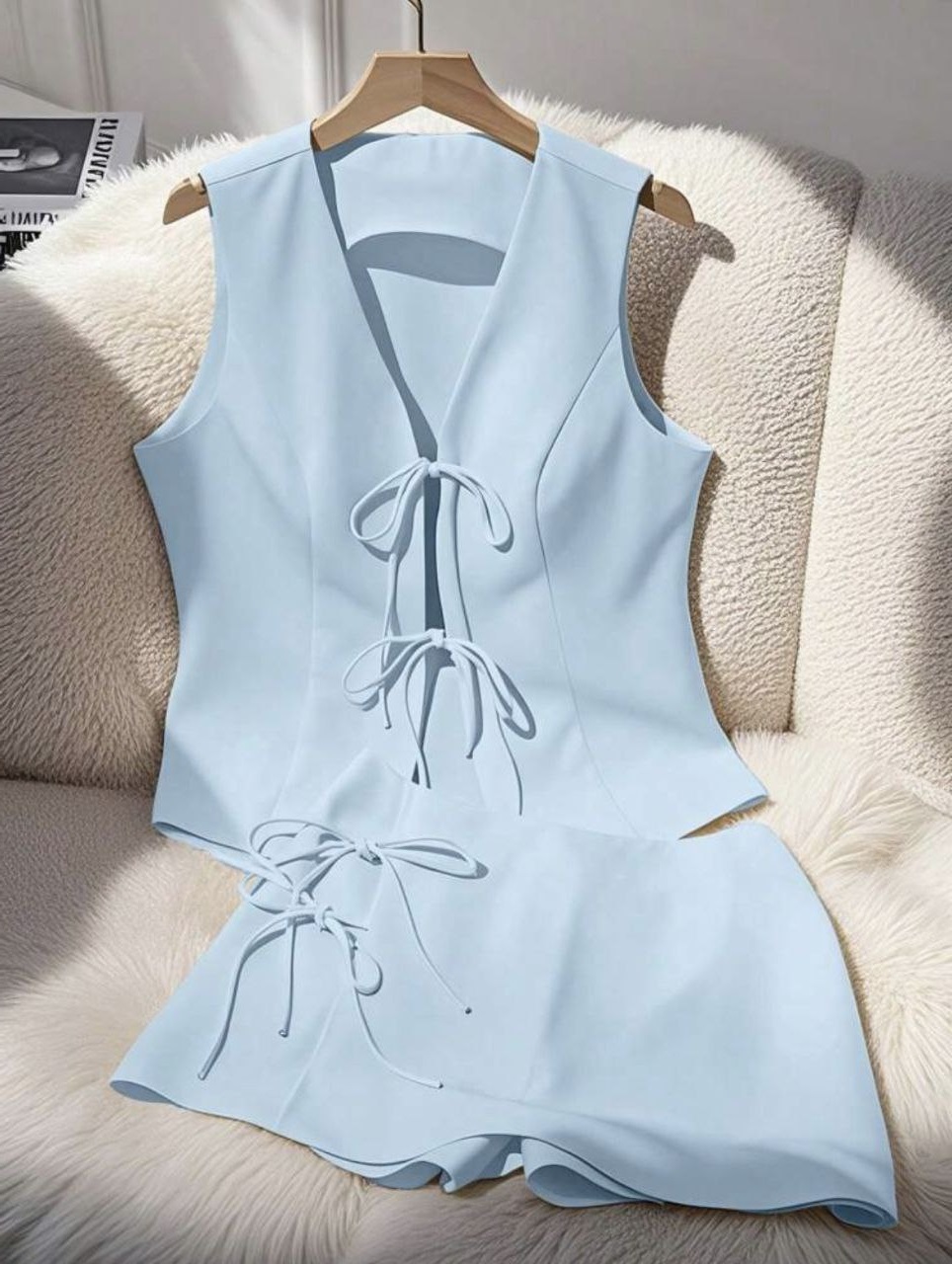 Удобные шорты, пояс на резинке, в тандеме с красивым жилетом