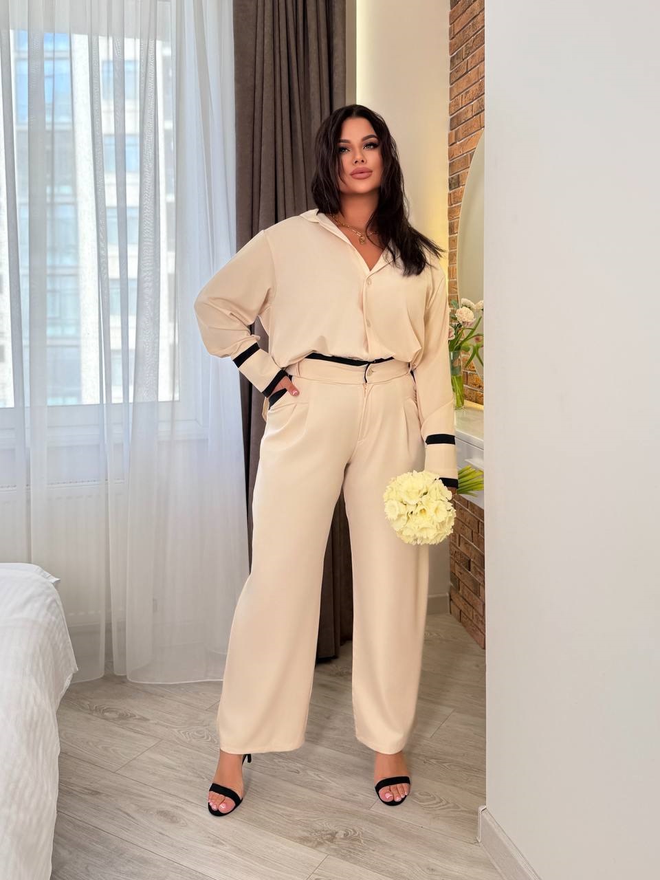 Головна » Магазин » Одяг » Жіночі костюми » Летний костюм свободного кроя с контрастными вставками (рубашка+брюки) бежевый