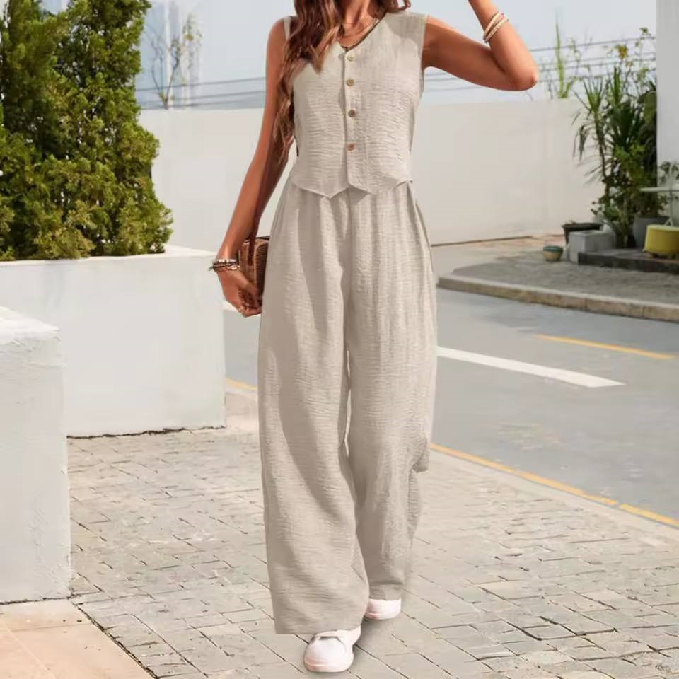 Головна » Магазин » Одяг » Жіночі костюми » Летний костюм (свободные брюки+жилет) молочный