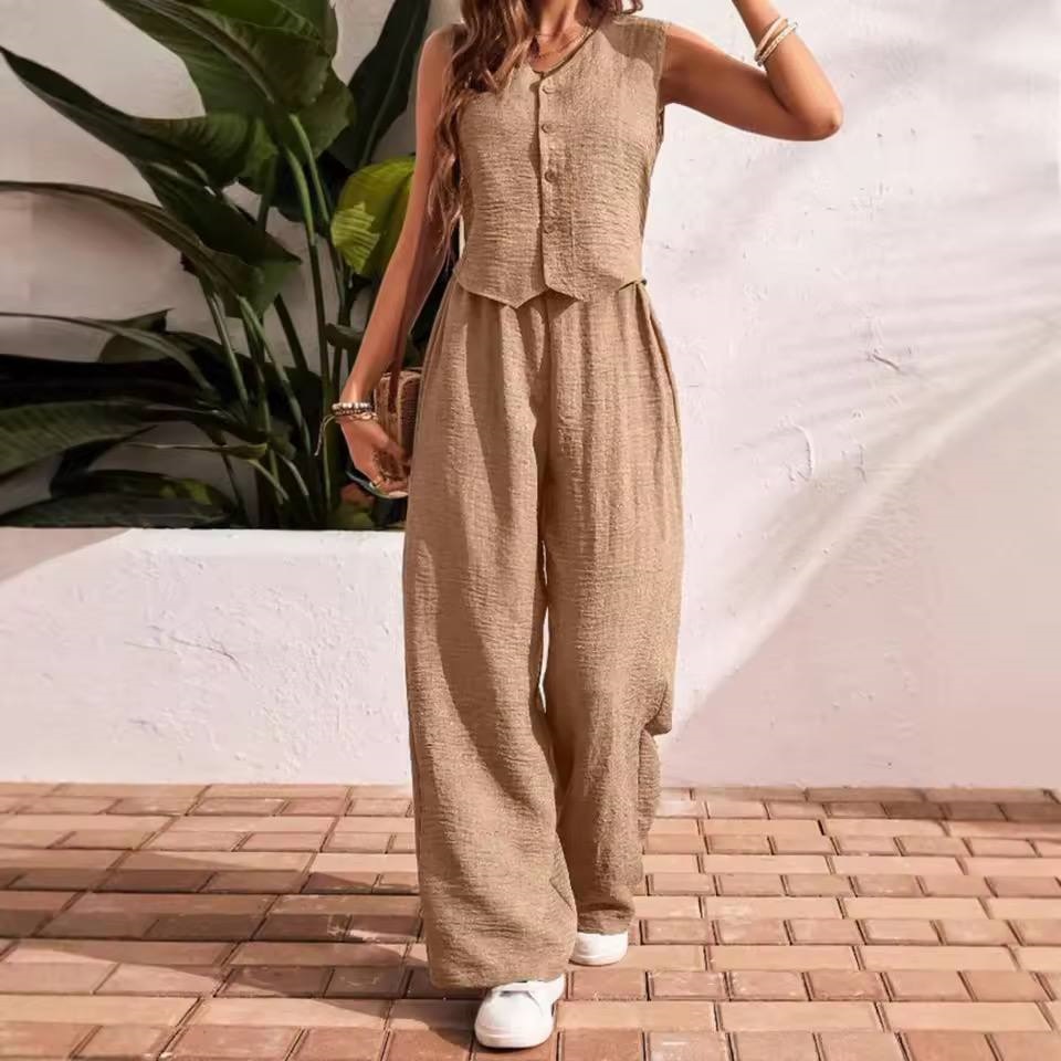 Головна » Магазин » Одяг » Жіночі костюми » Летний костюм (свободные брюки+жилет) мокко