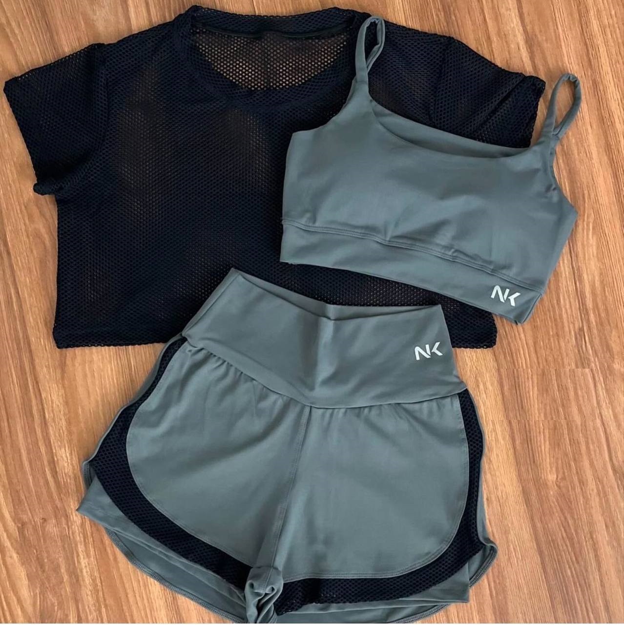 Летний костюм тройка (футболка сетка+топ+двойные шортики) графит