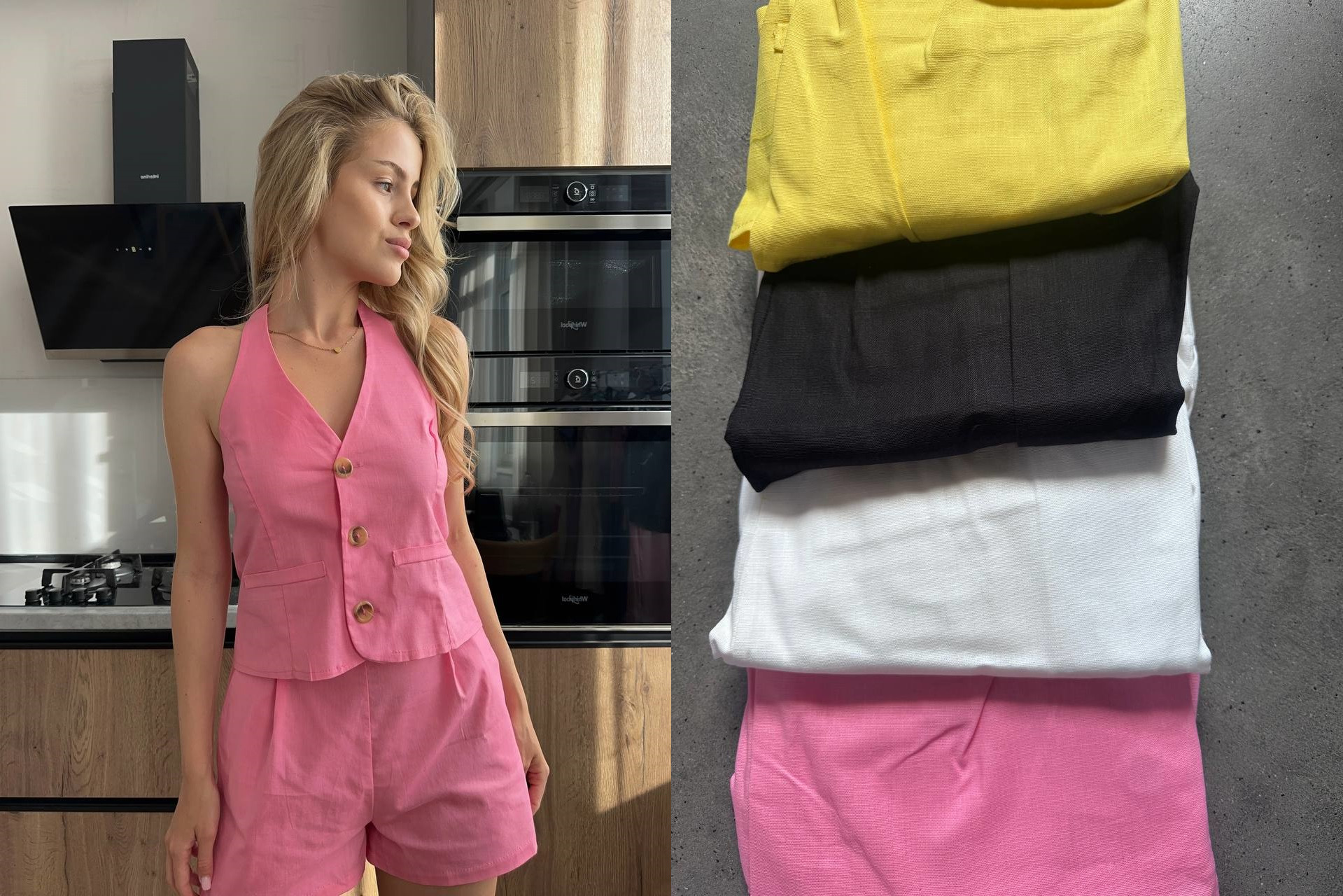 Будьте першим, хто залишив відгук “Летний Костюм (жилетка+шорты) лен молочный”“