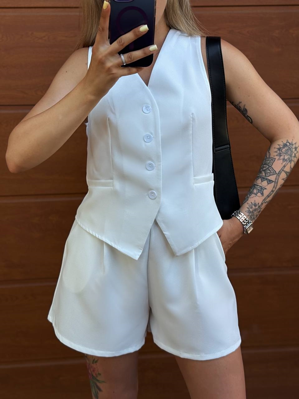 Будьте першим, хто залишив відгук “Летний костюм (жилетка+шорты с карманами) молочный”“