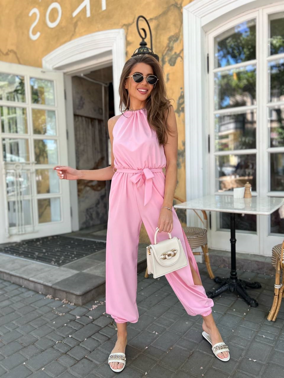 Головна » Магазин » Одяг » Комбінезон » Летний легкий комбинезон под пояс без рукавов розовый