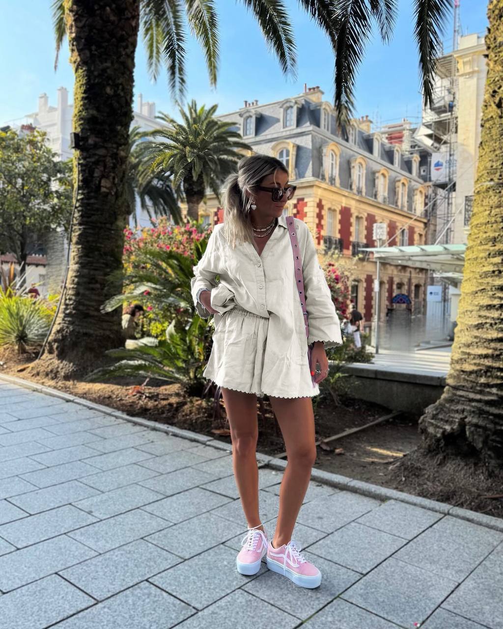 Головна » Магазин » Одяг » Жіночі костюми » Летний льняной костюм рубашка на пуговицах+шорты молочный