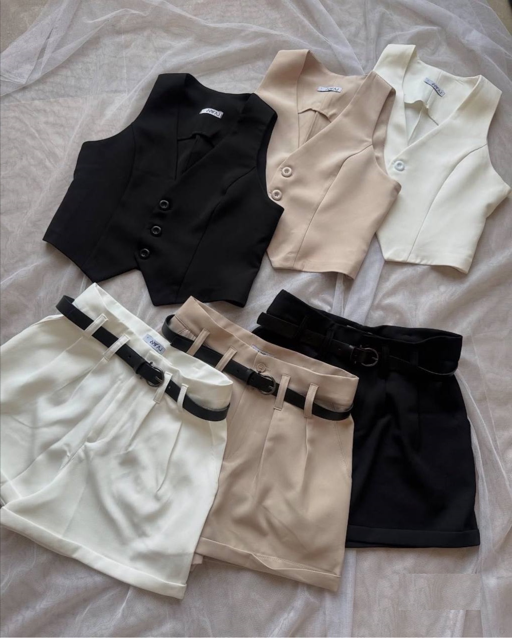 Головна » Магазин » Одяг » Жіночі костюми » Летний льняной костюм (шорты с отворотом+жилет) черный