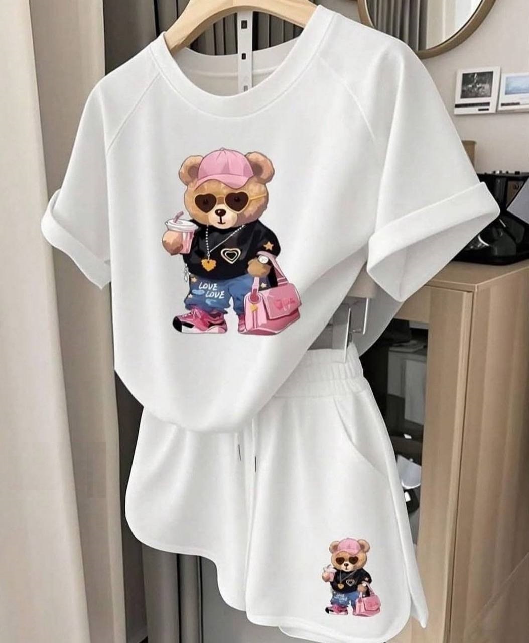 Головна » Магазин » Одяг » Жіночі костюми » Летний Трикотажный костюм с накатом (футболка+шорты) белый