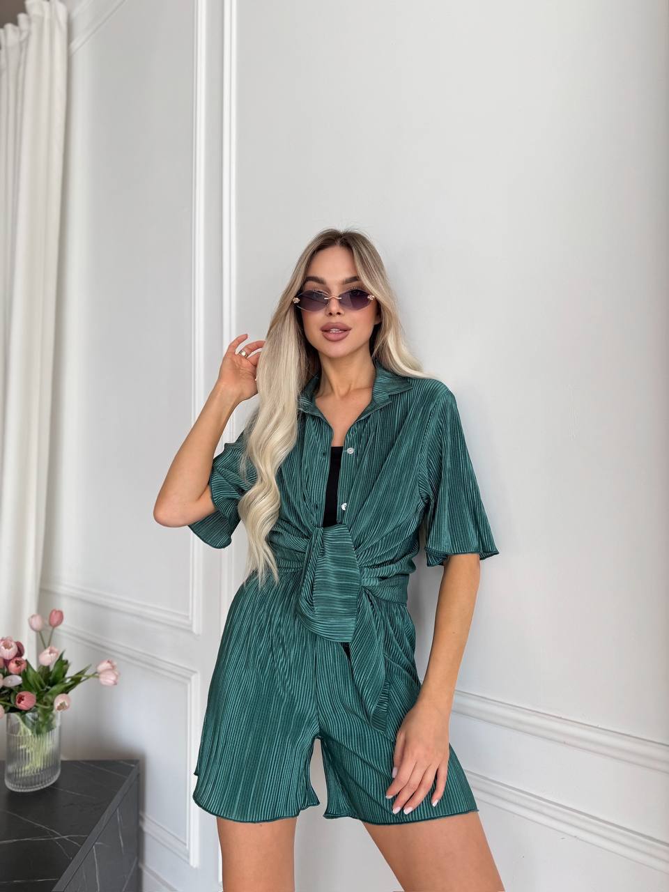 Будьте першим, хто залишив відгук “Летний женский костюмчик: рубашка с коротким рукавом+шорты (гофре) изумруд”“
