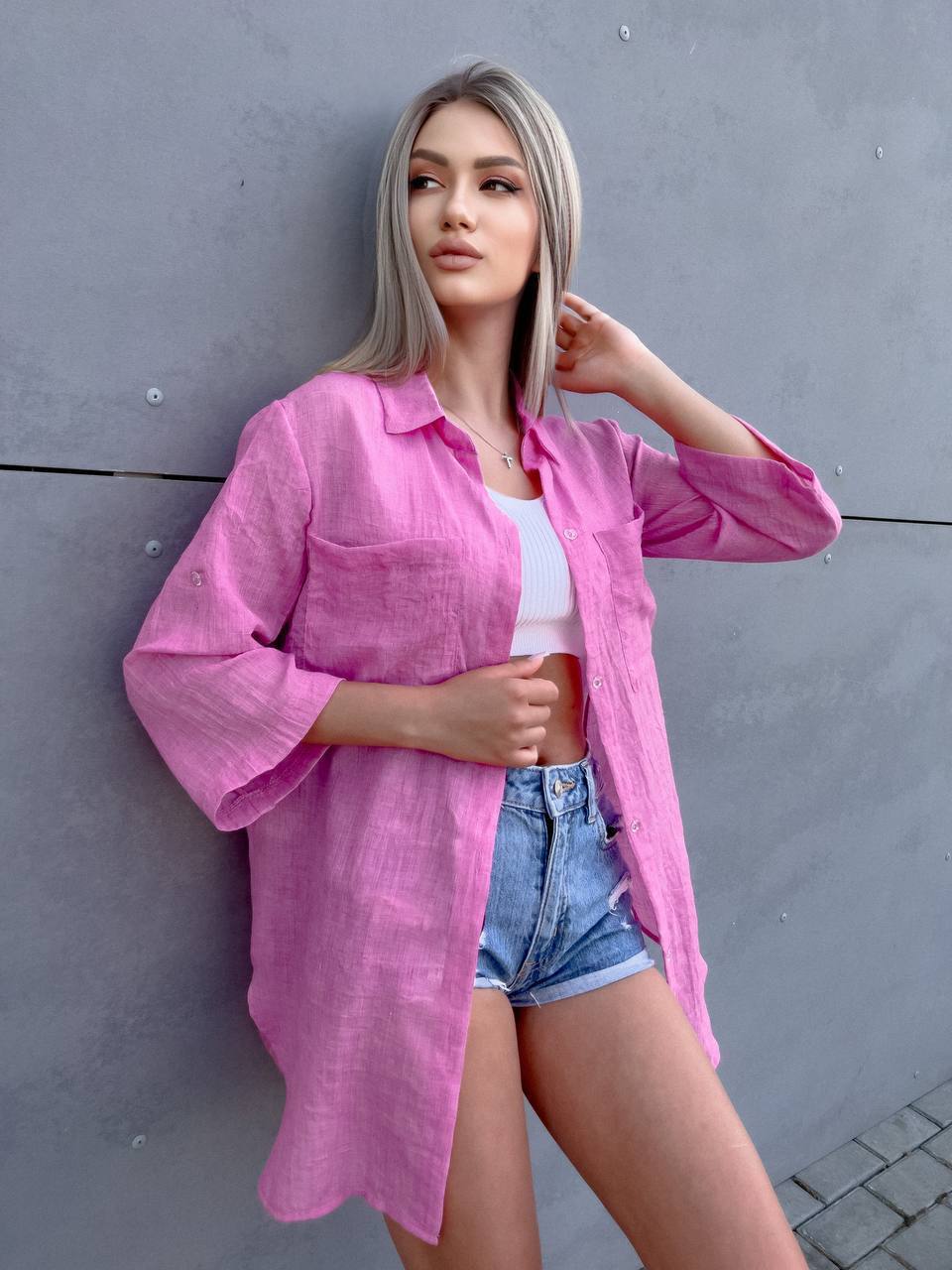 Летняя легкая рубашка на пуговицах (котон-вуаль) розовый